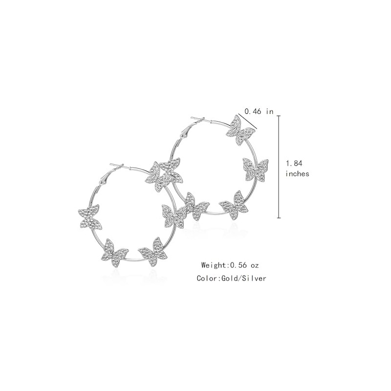 - Lightweight and Comfortable: The earrings have a hoop diameter of 1.84 inches and a butterfly charm size of 0.46 inches,0.56 oz a pair, offering a balanced design that is easy to wear throughout the day