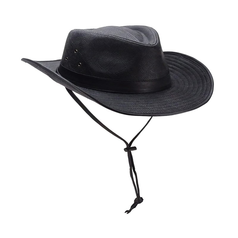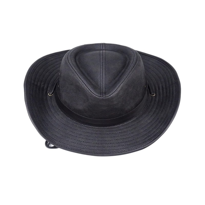 Silver Canyon Men’s Teton Faux Leather Outback Hiking Black Western Hat with Chin Cord, Small