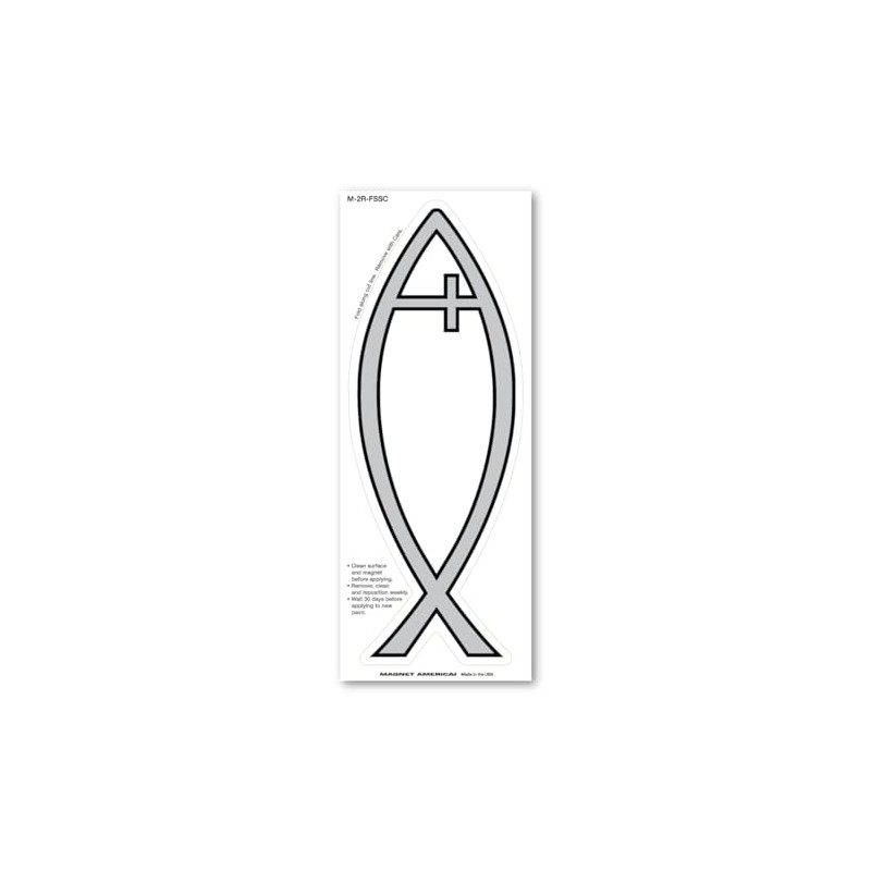Silver Cross Fish Magnet by Magnet America Is 2.625" x 7" Made for Vehicles and Refrigerators