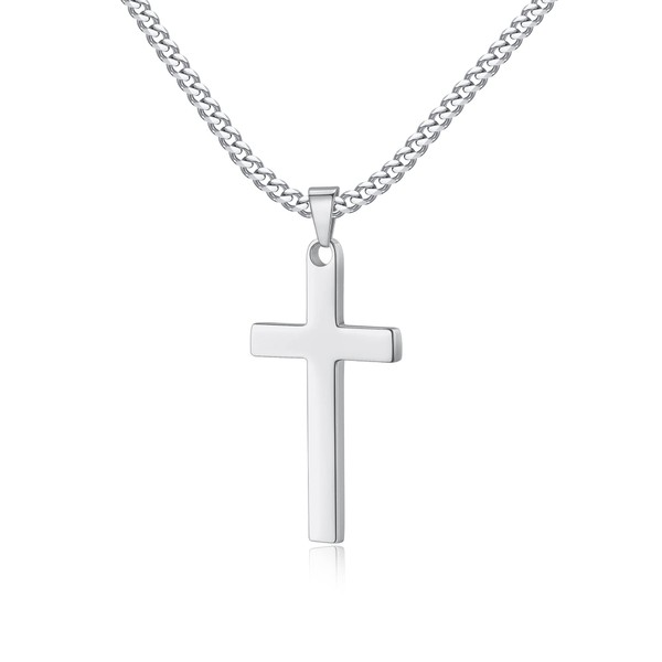 - CROSS NECKLACE:Stainless steel silver cross chain necklace for men is waterproof, can wear it when taking a shower or swimming. Mens cross necklaces are very comfortable to wear and cross pendant combines perfectly with other necklaces.