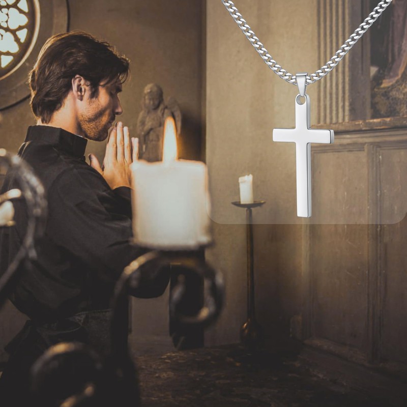 - CROSS NECKLACE:Stainless steel silver cross chain necklace for men is waterproof, can wear it when taking a shower or swimming. Mens cross necklaces are very comfortable to wear and cross pendant combines perfectly with other necklaces.