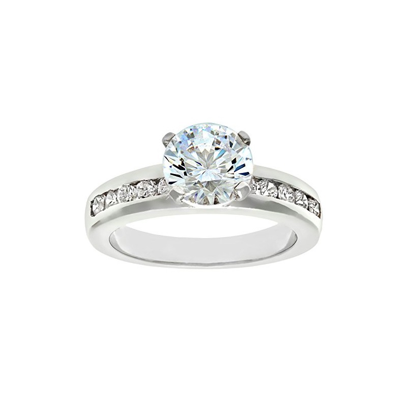 Silver Cubic Zirconia Engagement Ring with Cubic Zirconia shoulders S