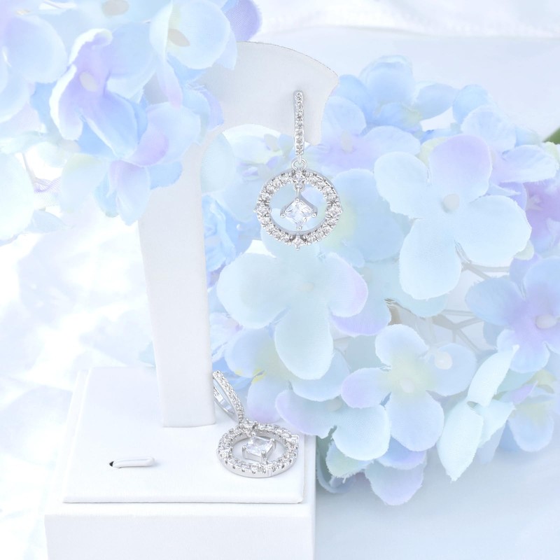 - ♥ Make a statement with these women hoop earrings featuring cubic zirconia accents. The cubic zirconia loop earring comes with a circle pendant with a square cubic zirconia hanging from the pendant. The unique design brings a modern touch to any outfit, making you even more unique and stylish!