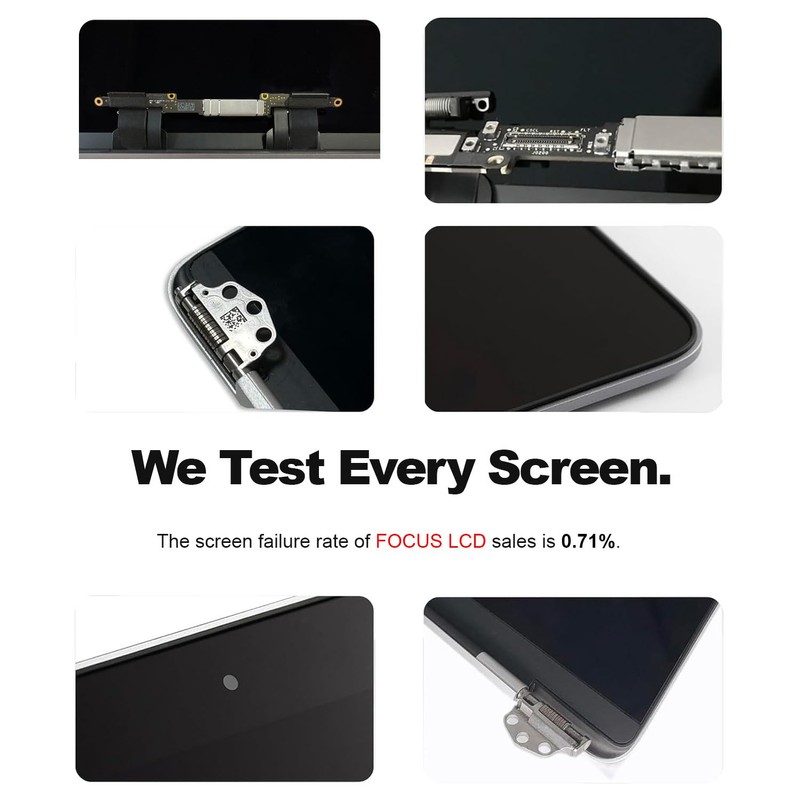 - Provide you with a brand new LCD Assembly, which will undergo multiple functional tests in the factory, including camera, hinge, brightness adjustment, automatic light sensing, keyboard light sensing. We pay great attention to testing every screen