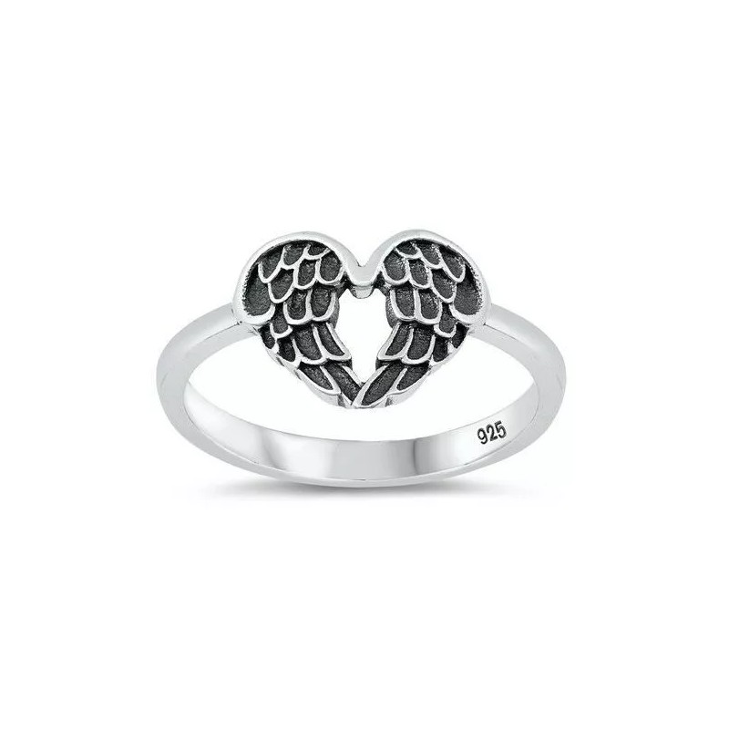 Silver Line Heart Wings Ring Genuine Sterling Silver 925 Oxidized Face Height 10 mm Size 6