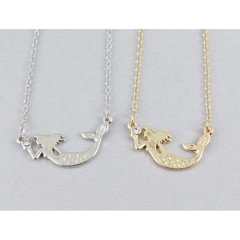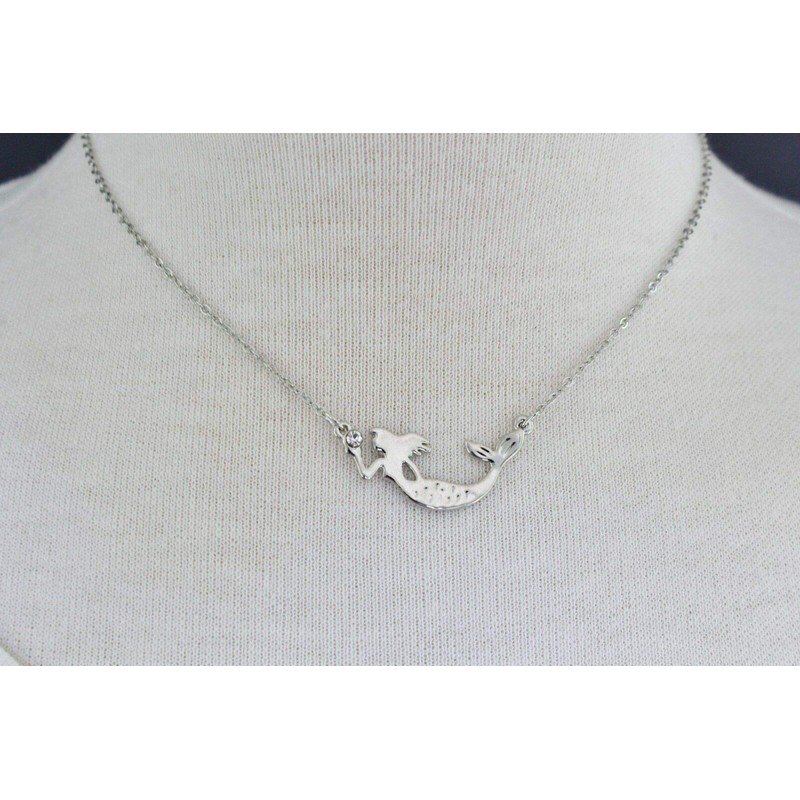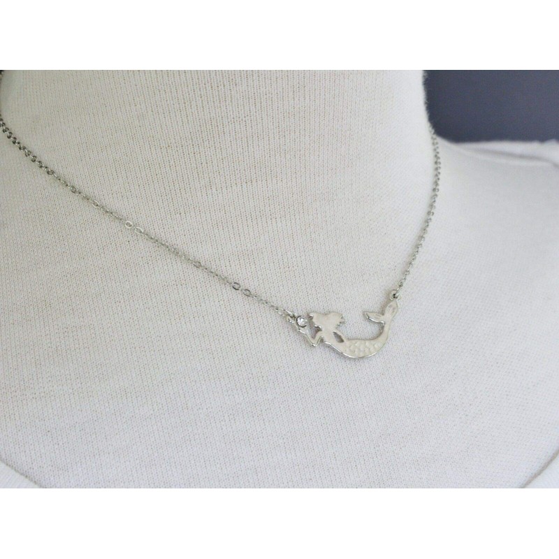 Silver mermaid necklace pendant 15-17.5 long choker sea siren pendant little