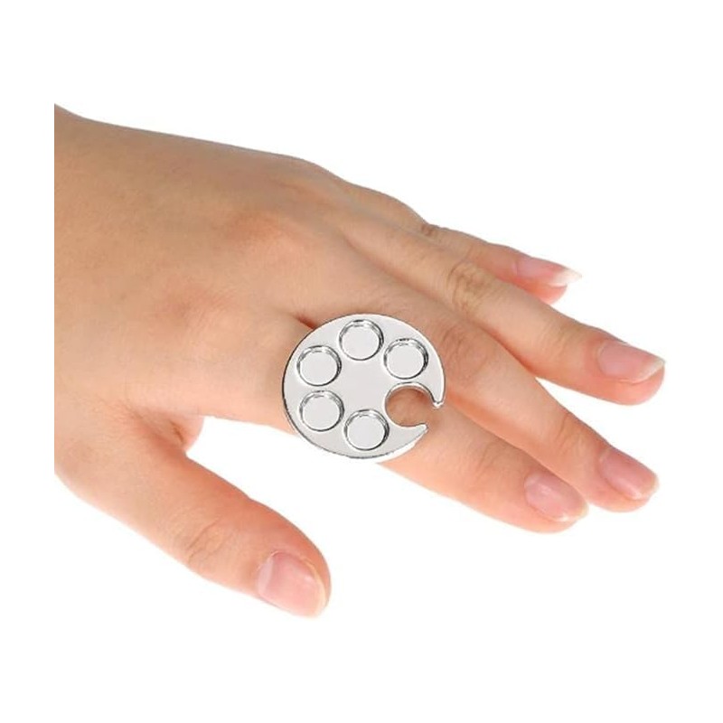 Silver Metal Mini Manicure Palette, Paint Palette Finger Rings, Wearable Metal Nail Art Polish Holder Palette Finger Ring, Gel Polish Mixing Tray Nail Art Tools Makeup Palettes