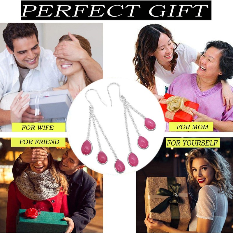 Silver Palace 925 Sterling Silver Natural Gemstone Drop Dangle Earrings for Women, Metal Gemstone, ruby-drop