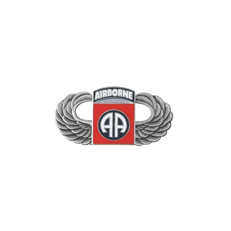 Silver Paratrooper Wings with 82nd Airborne Division Lapel Pin, Platinum Red Blue, 1 1/4 inch