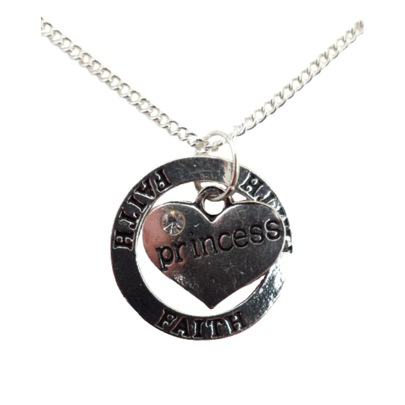 Silver Plated Necklace Princess Love Heart Gem Charm Faith Circle Ring