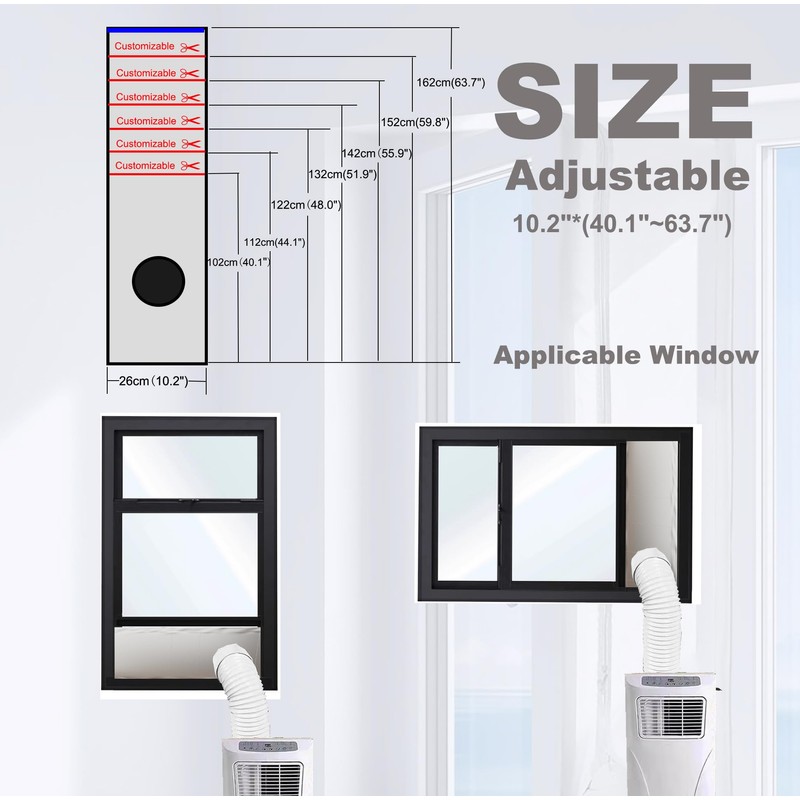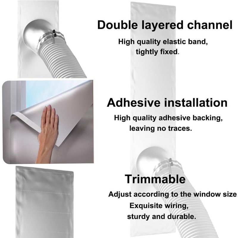 - STRONG Sealing & Insulation: The pipeline outlet is a double silver fabric sealed channel with a length of 14.5cm. Two strong elastic ropes lock the pipeline, securely fixing and sealing it! With sealing tape to ensure 100% adhesion between the fabric and the window, avoiding heat reflux.
