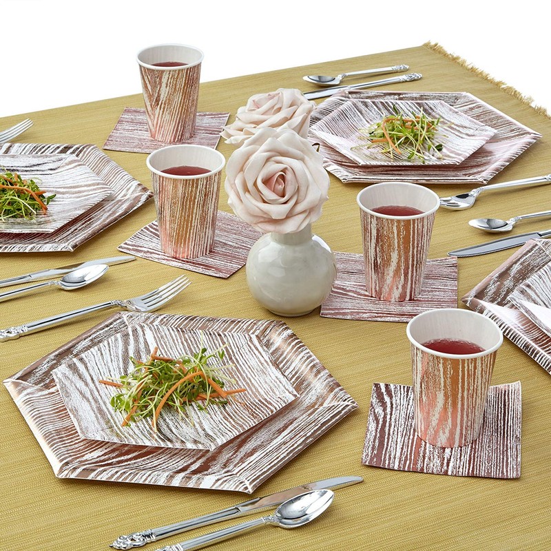 - EXQUISITE DESIGN: These attractive rose cups are designed with a wood design which is what makes these elegant party cups stand out.