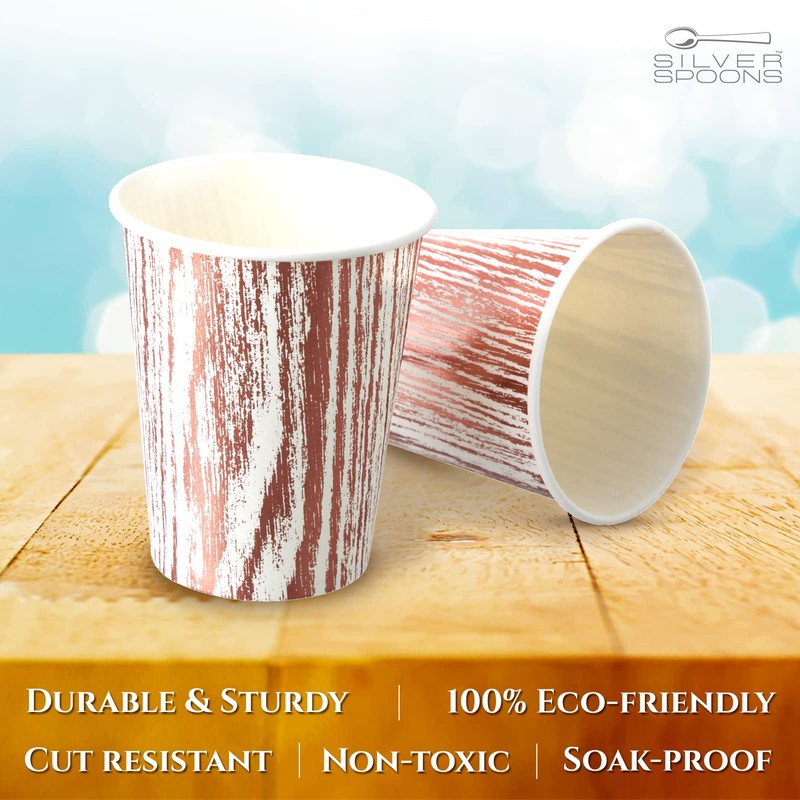 SILVER SPOONS (18 - Pack 9 Oz.) Elegant Disposable Coffee Cups - Drinking Hot Cups For Coffee, Tea, Hot Chocolate & All Sort Of Beverages, Paper Coffee Cups, Great For, Coffee Shop, Wood Design - Rose