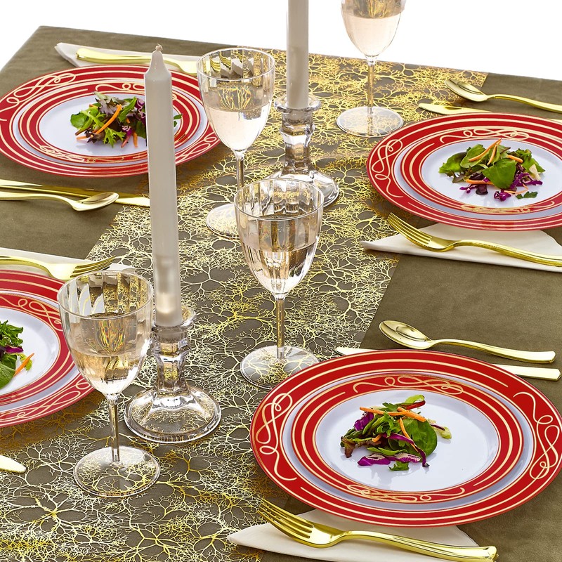- DESIGNED FOR ALL OCCASIONS: Our disposable dinnerware sets are ideal for all occasions. They can transform a simple table setting into a stylish one. These plates are a perfect option for upgrading weddings, engagements, upscale events, dinners, etc