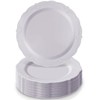 Silver Spoons Vintage White Plastic Dinner Plates Set of 10 – 10.25 Inch Party Plates with Scalloped Edges – Elegant Look for Tea Parties, Bridal Showers, or Everyday Use