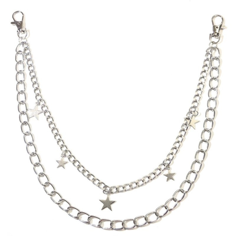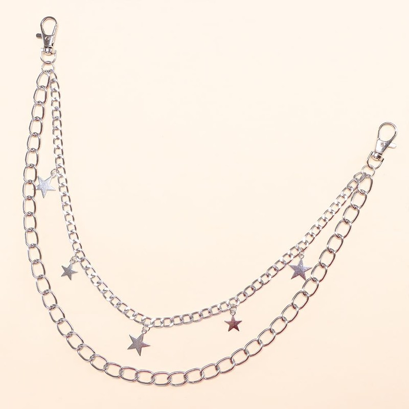 - VERSATILE DESIGN: Double-layered silver chain with star charms, perfect for pants, jeans, and wallets - adds an edgy statement to any outfit
