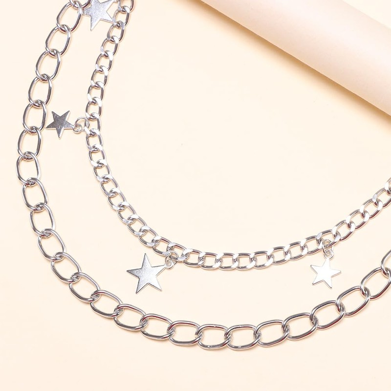 - STYLE FEATURES: Multiple decorative silver star charms strategically placed along the chains for a trendy Y2K street fashion look
