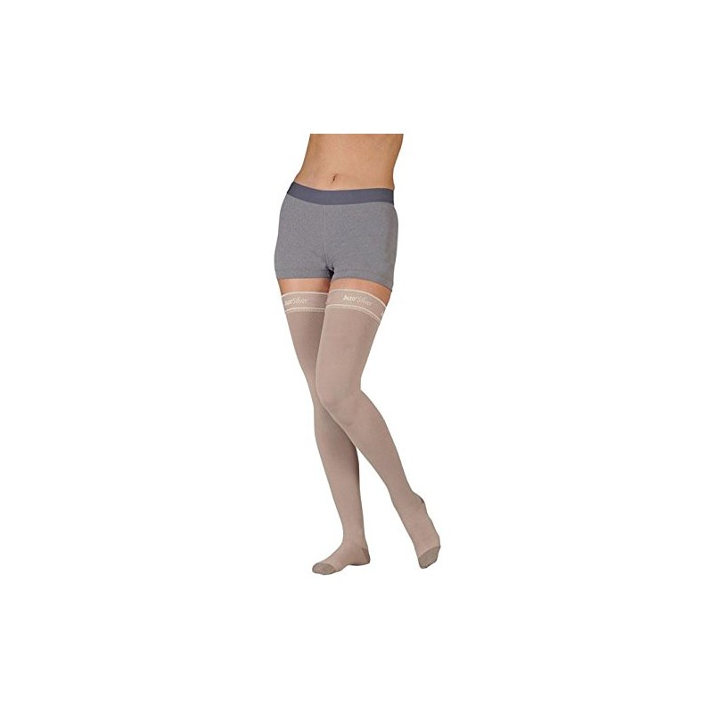 Silver Stocking 30-40 mmHg, Model 2061 (Size 2 Thigh High (ag) Open Toe Silicone Border, Silver)