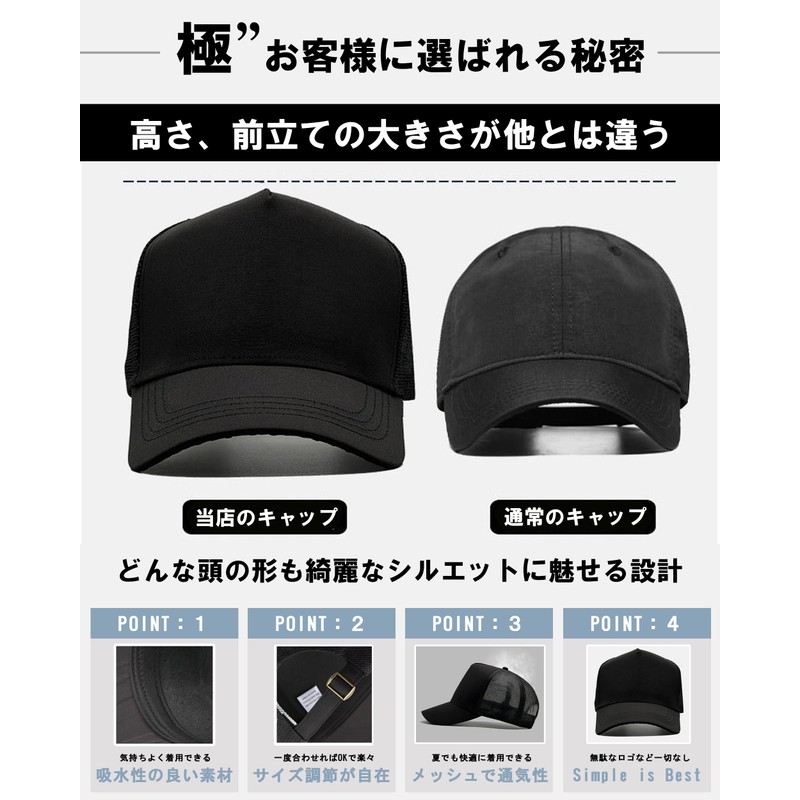 This men's mesh cap is made with a deeper comfortable fit and a beautiful silhouette. The adjuster can be adjusted securely for a comfortable fit.