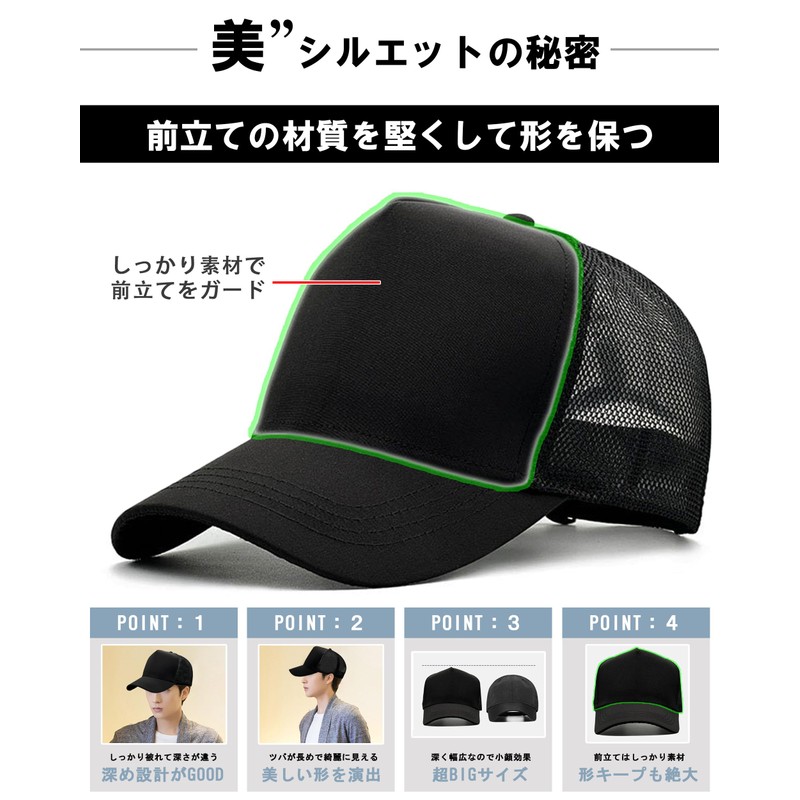 Silver & Style Mesh Cap, Large Size, Plain, Deep, Simple, Men's Cap, Hat, bei...