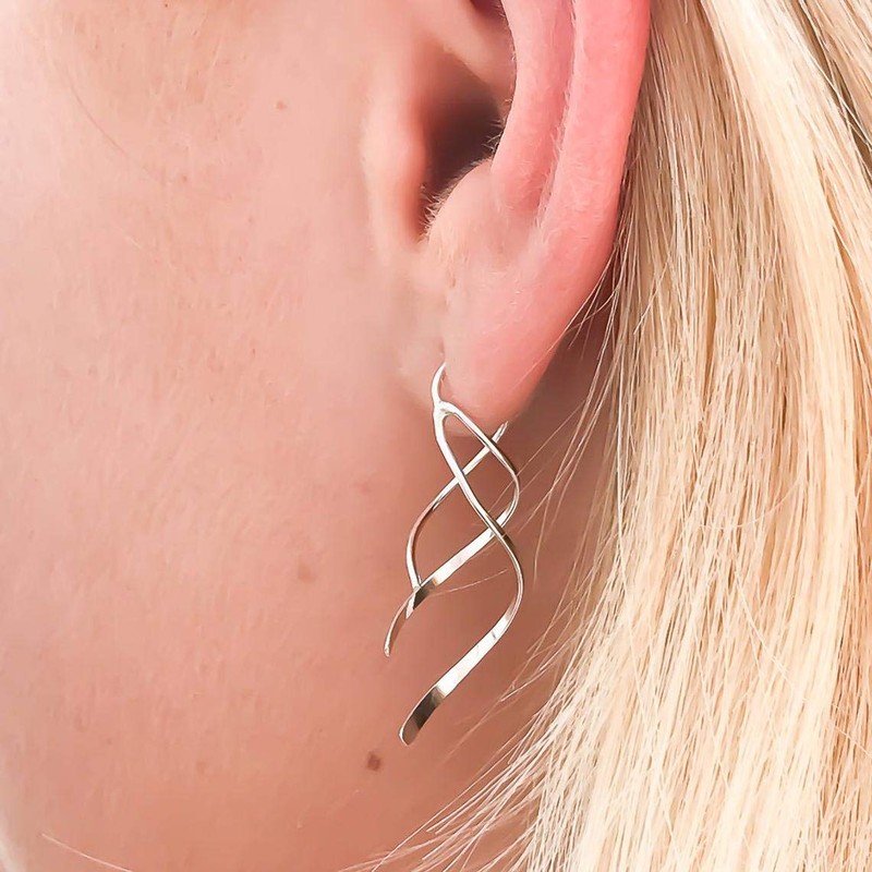 Silver Threader Earrings for Women, 925 Sterling Silver, 1.5in, Spiral Earrings for Women Hypoallergenic, Dangle Drop Earrings, Silver Dainty Earrings, Lightweight Dangle Earrings (Sterling Silver)