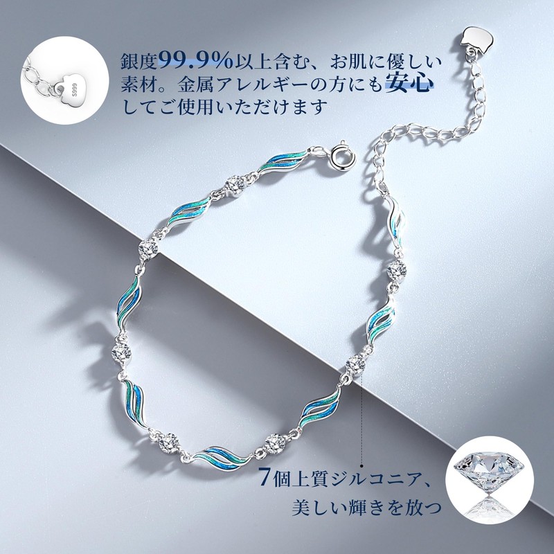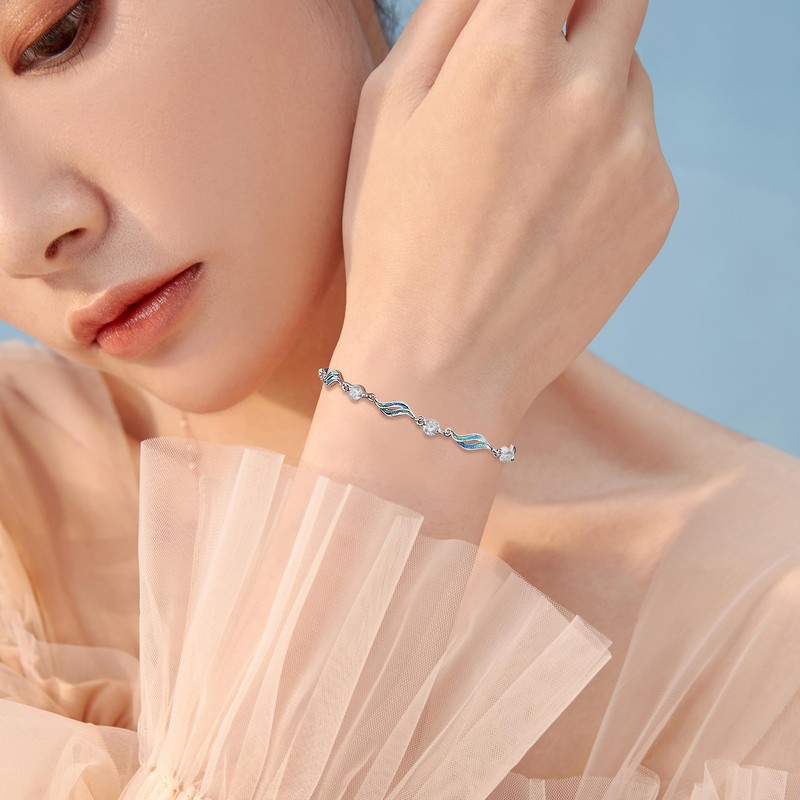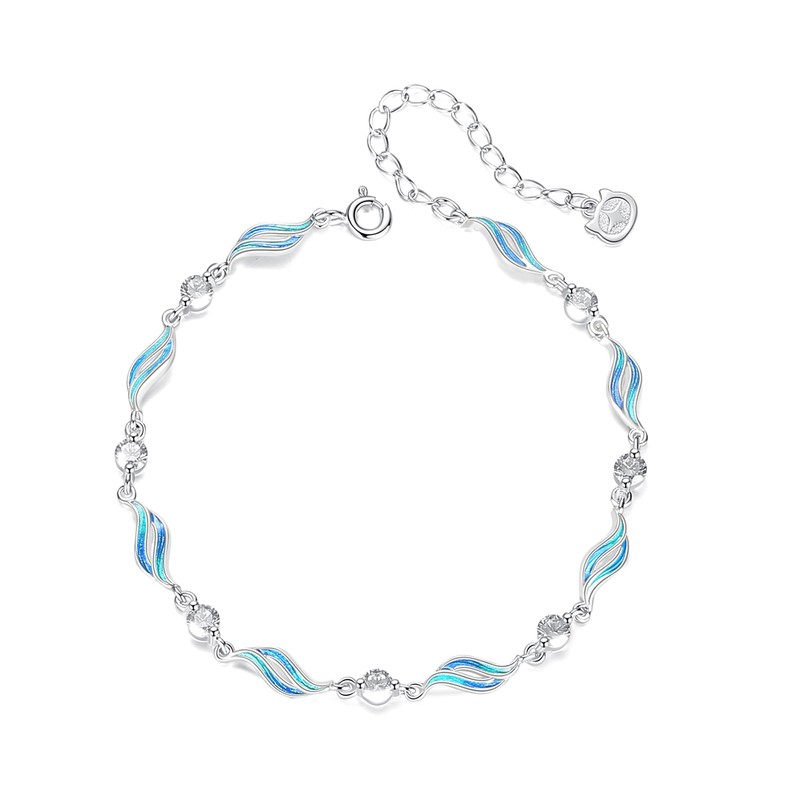 - Design: This bracelet features high quality cubic zirconia sways on both sides of the sea waves motif. Perfect accessory for summer. The chain has 7 bijoues that are embedded into the chain for a subtle shine. The simple design is suitable for adult women and is recommended for daily use