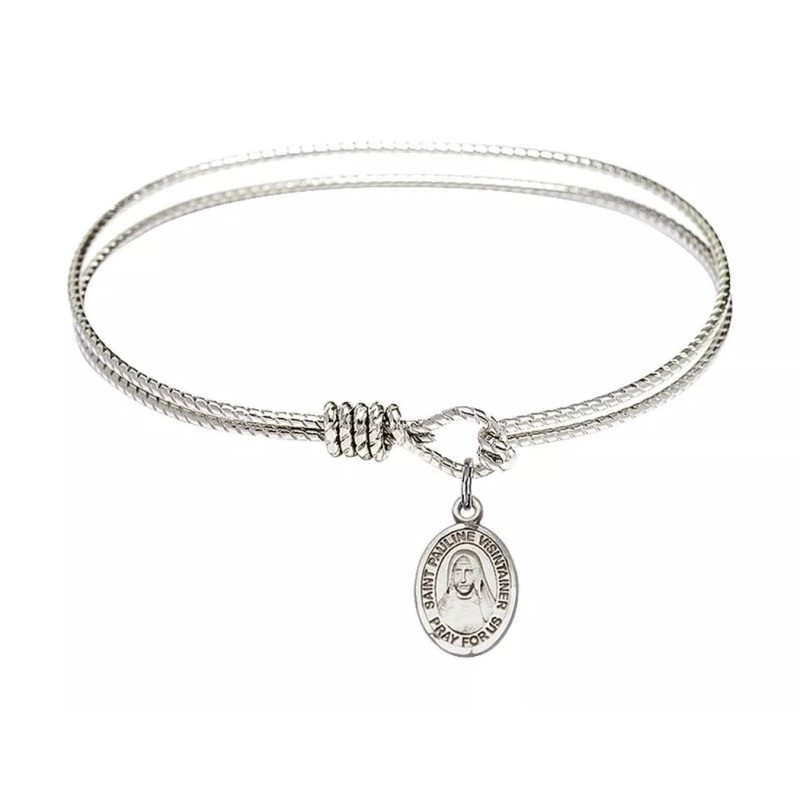 Silver Tone Bangle Bracelet with Saint Pauline Visintainer Charm, 6 1/4 Inch