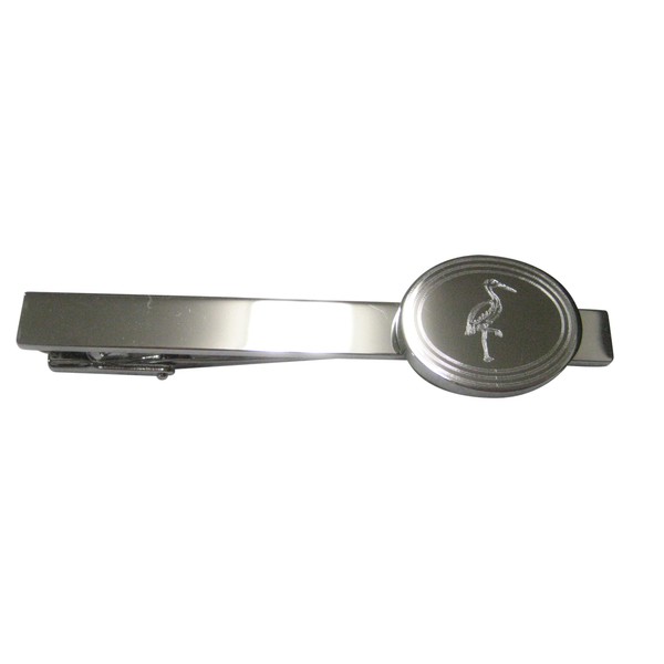 Silver Toned Oval Etched Crane Bird Tie Clip