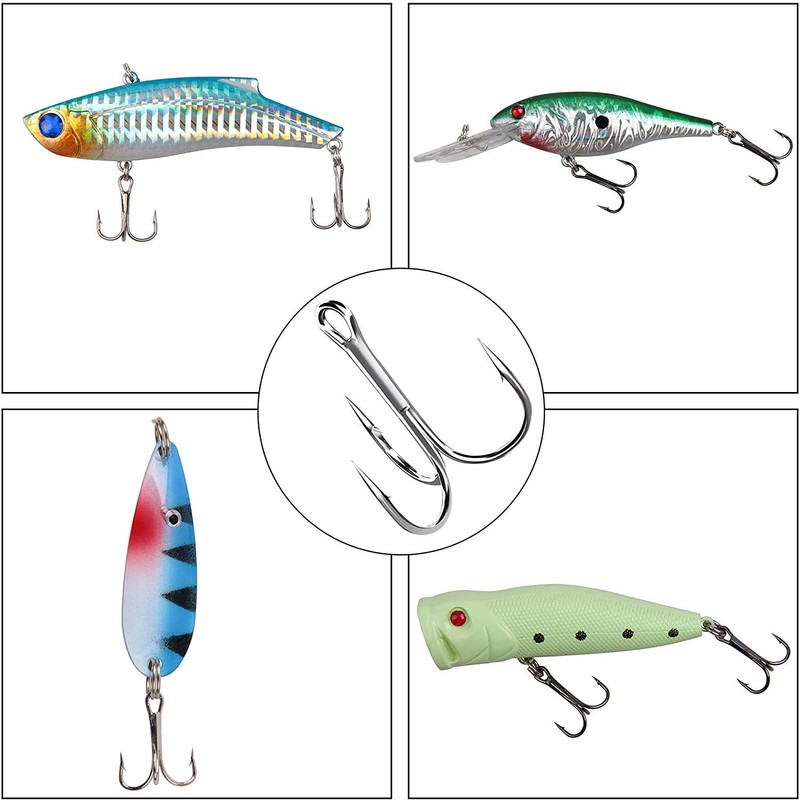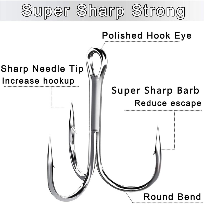 - STRENGTH:Fishing treble hook is forged from the finest high-carbon steel,covered in a sliver nikel finish that delivers unmatched hook penetration and stealthiness.