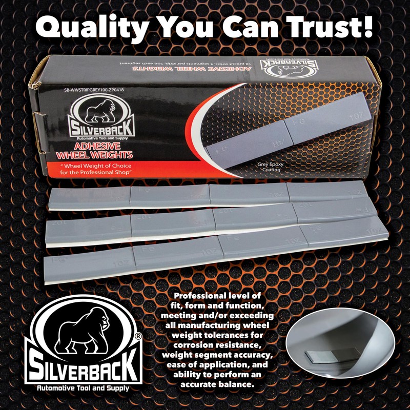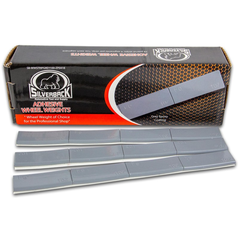 Silverback 1.0 oz Steel Adhesive Tape Wheel Weights with Easy Peel Tape. Designed for The Professional Tire Dealer for Passenger Cars, Trucks, SUV's, & Motorcycles. Grey 1.0 oz Steel Tape Weight.