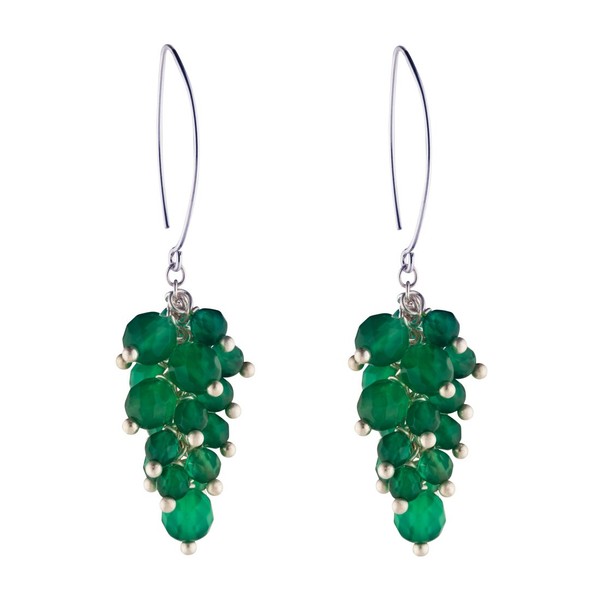 Silverly Women's 925 Sterling Silver Green Onyx Gemstone Grape Cluster Dangle Earrings
