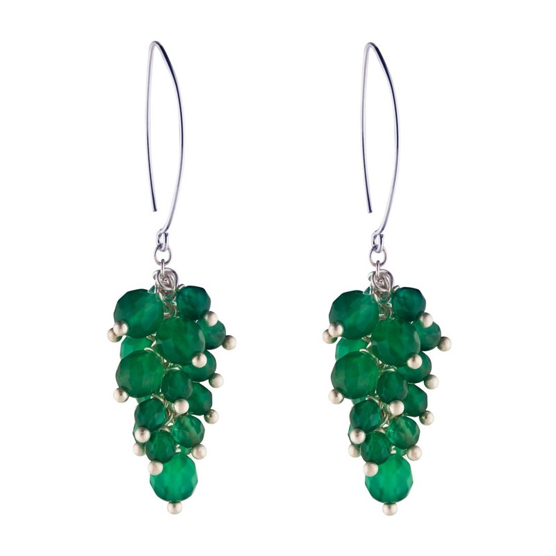 • FINE JEWELLERY TO CHERISH - 925 sterling silver with green onyx gemstone beads. The height of each earring including the hook is 55 mm. Width 15 mm. Weight 9.39 g. These 925 silver dangly earrings for women are for pierced ears.