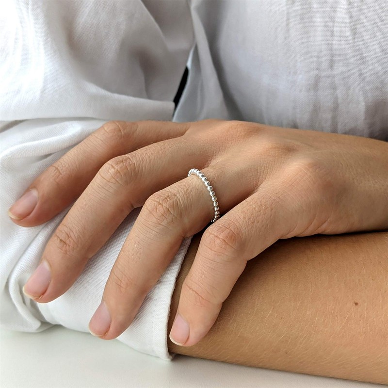 - FINE JEWELLERY TO CHERISH - 925 sterling silver ball beaded ring. Width 2 mm. Solid 925 silver rings are great for long-term wear as with the right care, they will retain their shine.