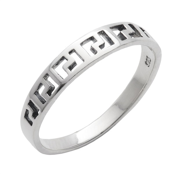 Silverly Women's 925 Sterling Silver Open Greek Keys L Shape Design Narrow Band Ring, Sterling Silver