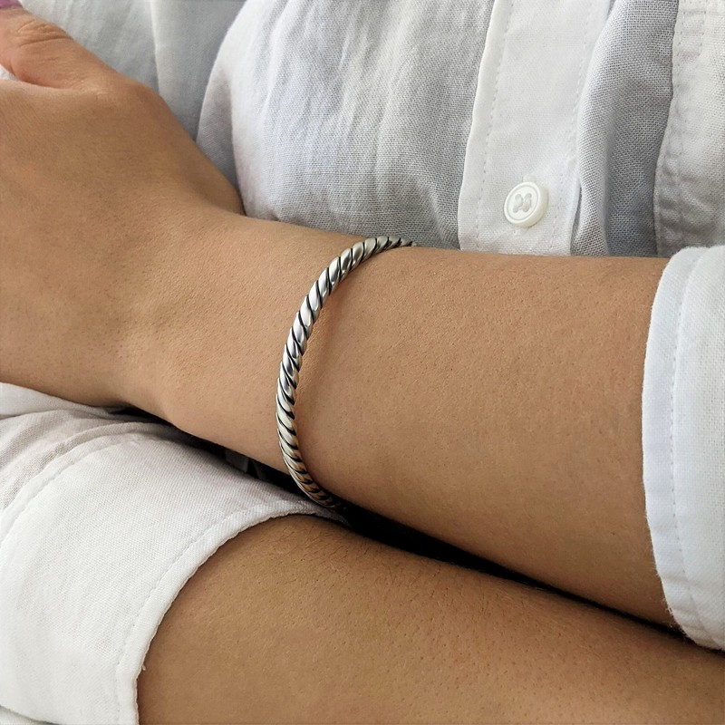 Silverly Women's .925 Sterling Silver Twist Rope Stackable Bangle Bracelet, Sterling Silver