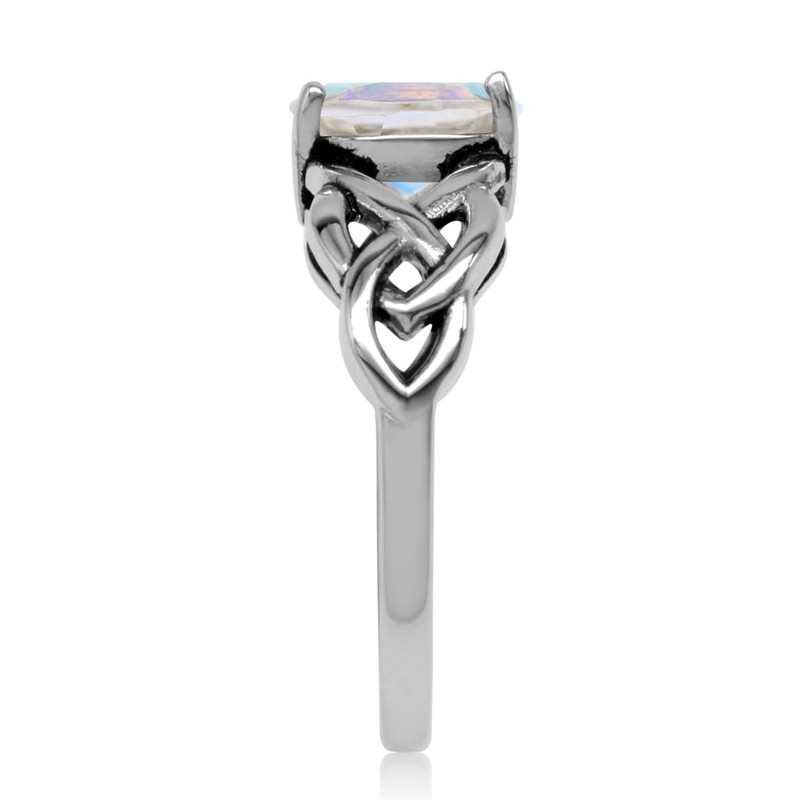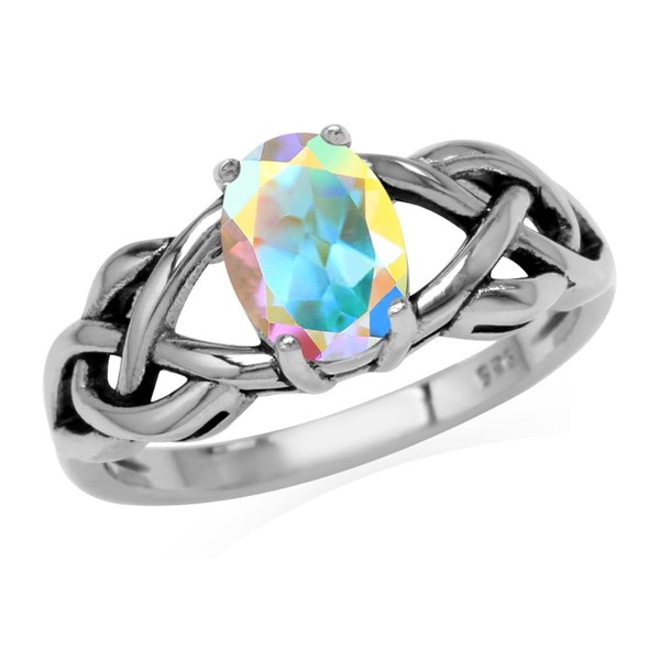 Silvershake 1.43 CTW 8X6mm Genuine Oval Shape Mercury Mist Aurora Borealis (AB) Topaz 925 Sterling Silver Celtic Knot Weave Solitaire Gemstone Ring, 6, Sterling Silver Rhodium/White Gold & Antique Finishing, genuine mercury mist aurora borealis (ab) topa