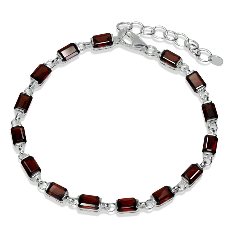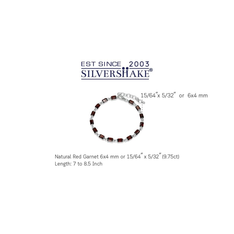 Silvershake 9.75ct. Natural Garnet 925 Sterling Silver 7 to 8.5 Inch Adjustable Bracelet