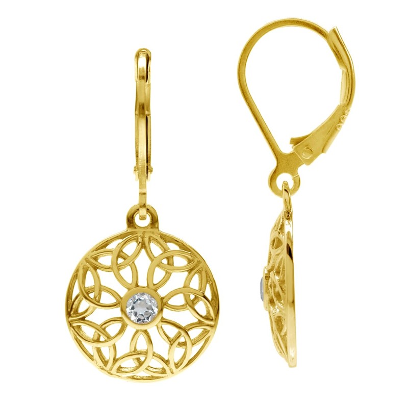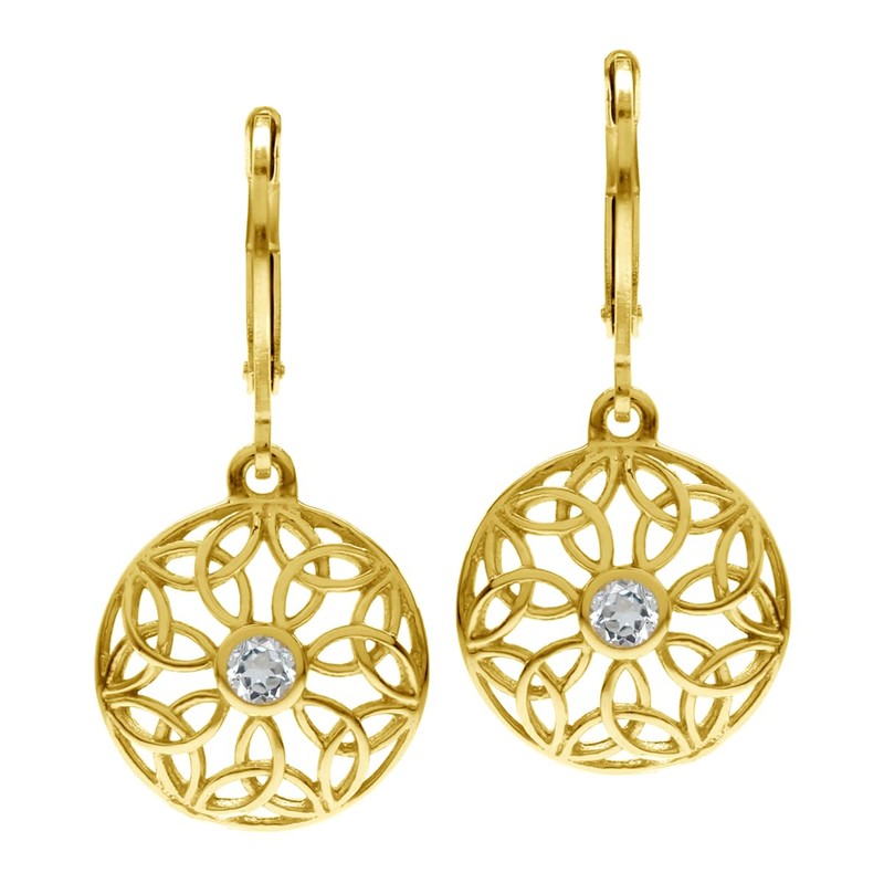 - Silvershake - arete colgantes de plata de ley 925 chapados en oro amarillo de 18 quilates con topacio azul auténtico/filigrana triquetra con nudo celta con forma de círculo; se envían a ti en protección antideslustre dentro de cajas de regalo reforzadas con bolsas estilo satén; garantizado más allá de la competencia
