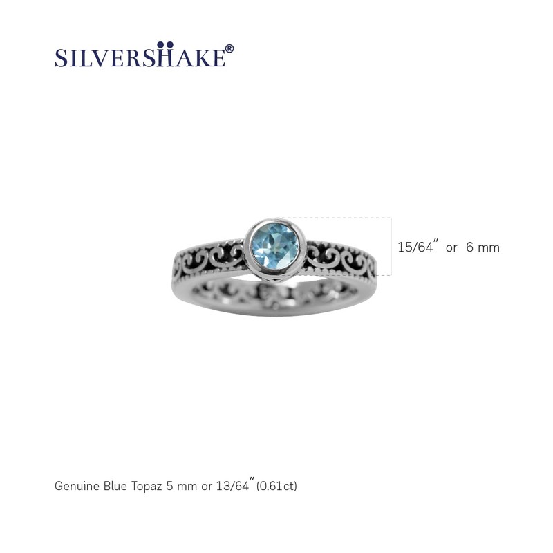 Silvershake Genuine Blue Topaz 925 Sterling Silver Stack Stackable Filigree Ring