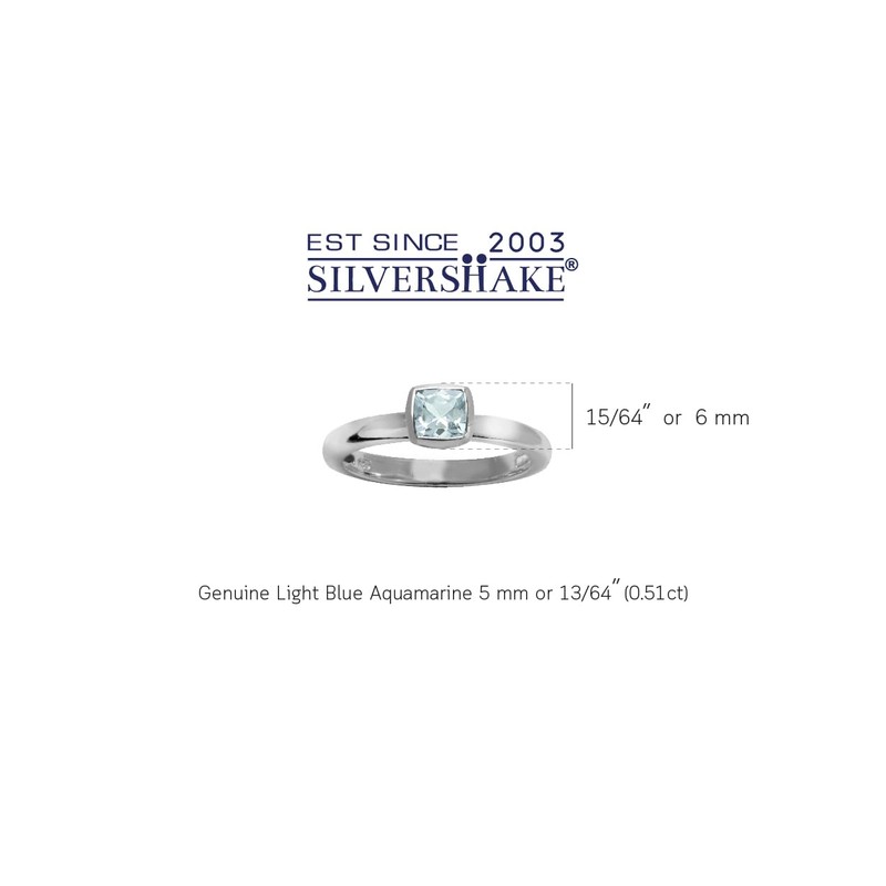 • Silvershake Genuine Cushion Cut Blue Aquamarine 925 Sterling Silver Stack Stackable Solitaire Ring, is shipped with 3M anti-tarnish protection in reinforced gift boxes & satin-style pouches; guarantee far-outlasting competitors