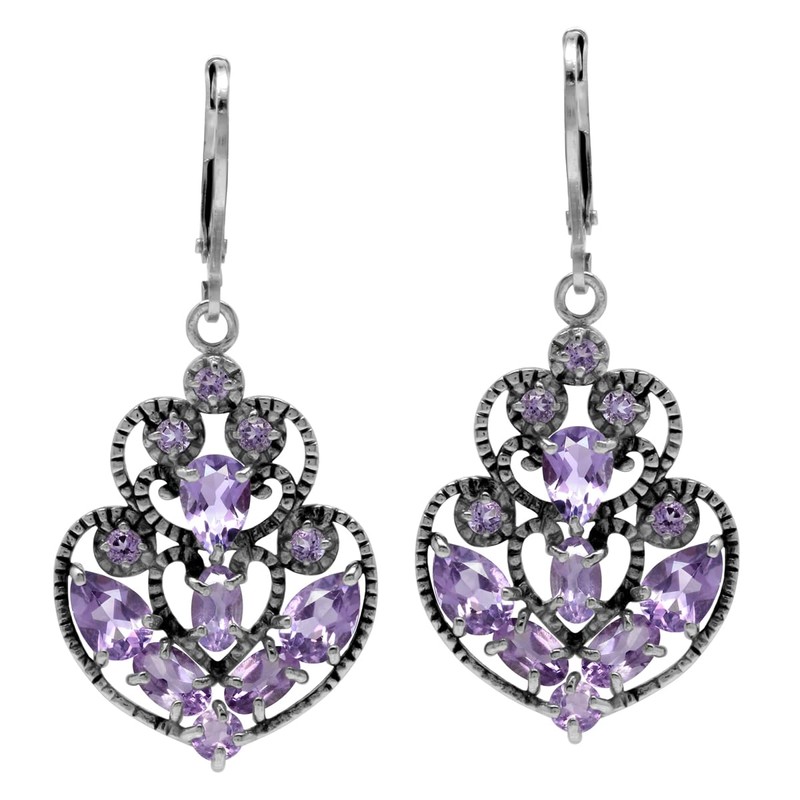 Silvershake Light Amethyst 925 Sterling Silver Filigree Victorian Style Leverback Earrings