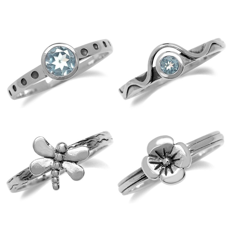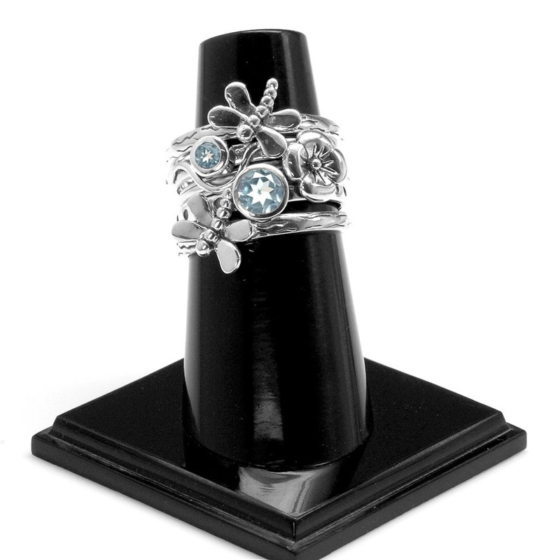 - Silvershake Set of 4 Genuine Blue Topaz 925 Sterling Silver Dragonfly and Flower Stack Stackable Rings, is shipped with anti-tarnish protection in reinforced gift boxes & satin-style pouches; guarantee far-outlasting competitors