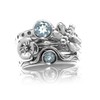 Silvershake Set of 4 Genuine Blue Topaz 925 Sterling Silver Dragonfly and Flower Stack Stackable Rings
