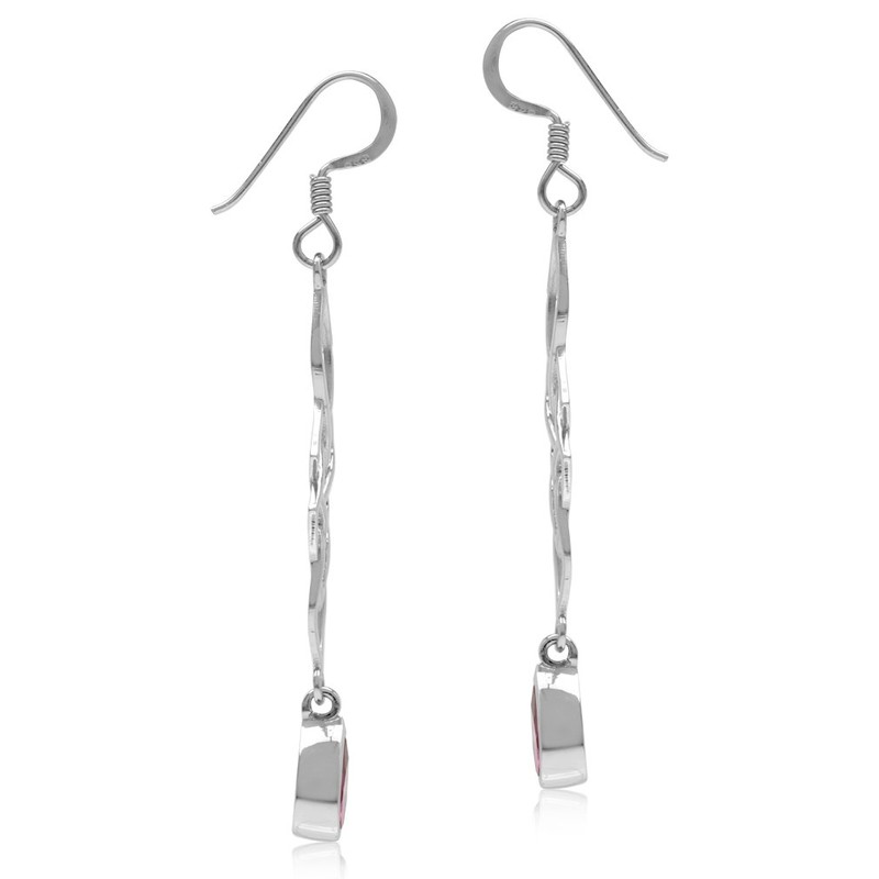 Silvershake Synthetic Ruby White Gold Plated 925 Sterling Silver Celtic Knot Weave Dangle Hook Earrings