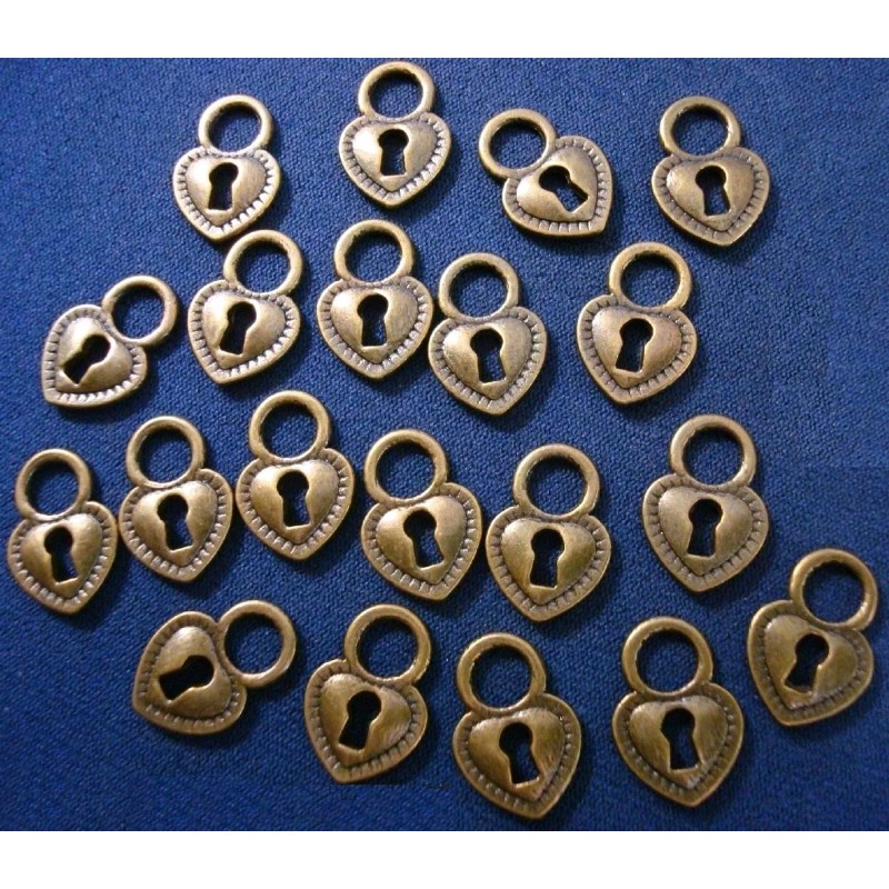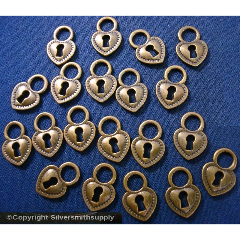 Silversmithsupply.com 20 Heart with key hole shaped ant bronze plated pendant...