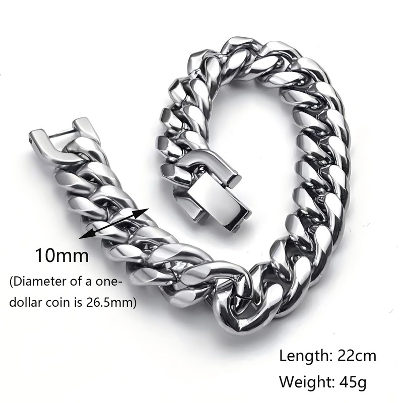 - CUBAN LINK DESIGN: Classic 10mm width chain pattern delivers a bold, masculine look that pairs well with any outfit