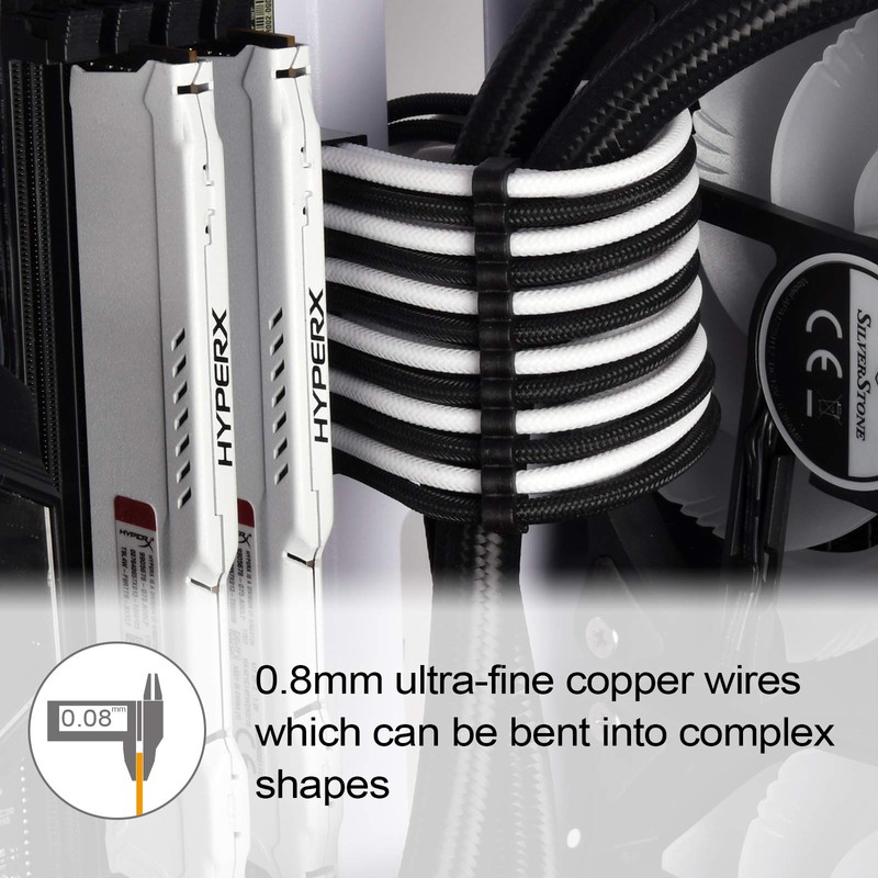 SilverStone Technology PP07E-MBBW, 30cm Motherboard 24pin to 24pin Sleeved Extention Cable, Black + White, SST-PP07E-MBBW