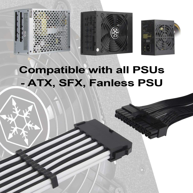 SilverStone Technology PP07E-MBBW, 30cm Motherboard 24pin to 24pin Sleeved Ex...