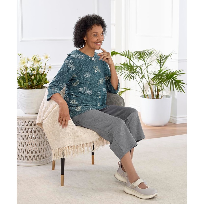 - STYLISH: This set of women’s elastic waist pants combine comfort with style that makes it stand out among other older women clothing. The capri cut and mock tie front are great for casual, athleisure style. The stretchy fabric is soft and breathable, perfect for any season. This combination creates a comfortable and stylish design that goes beyond other adaptive clothing for women.
