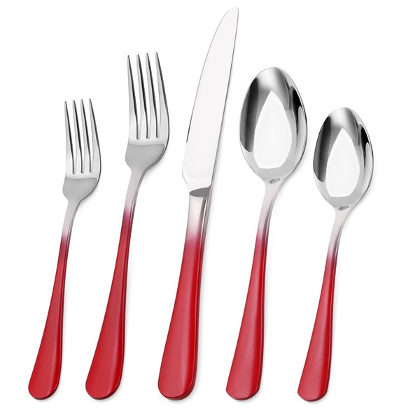 Silverware Set, Bysta 20-Piece Stainless Steel Flatware Set, Kitchen Utensil Set Service for 4, Tableware Cutlery Set for Home and Restaurant, Mirror Polished, Dishwasher Safe (Gradient Red)
